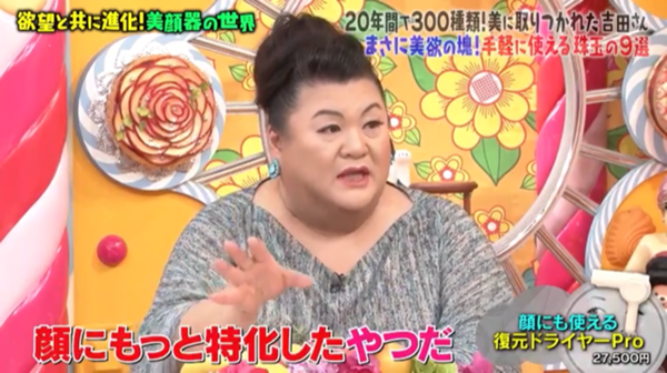 『イオン系の顔にあてられるドライヤーってよくあるけど、その中でも特化している、もっといいやつ!なのね!』と復元ドライヤーの事をマツコさんが言ってくれている。
